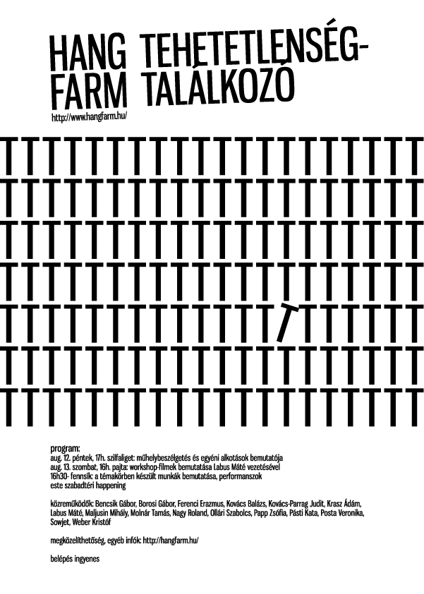 Tehetetlenség találkozó ("artist meeting on the topic Inertia/Impotence"), august 12-13. 2016.